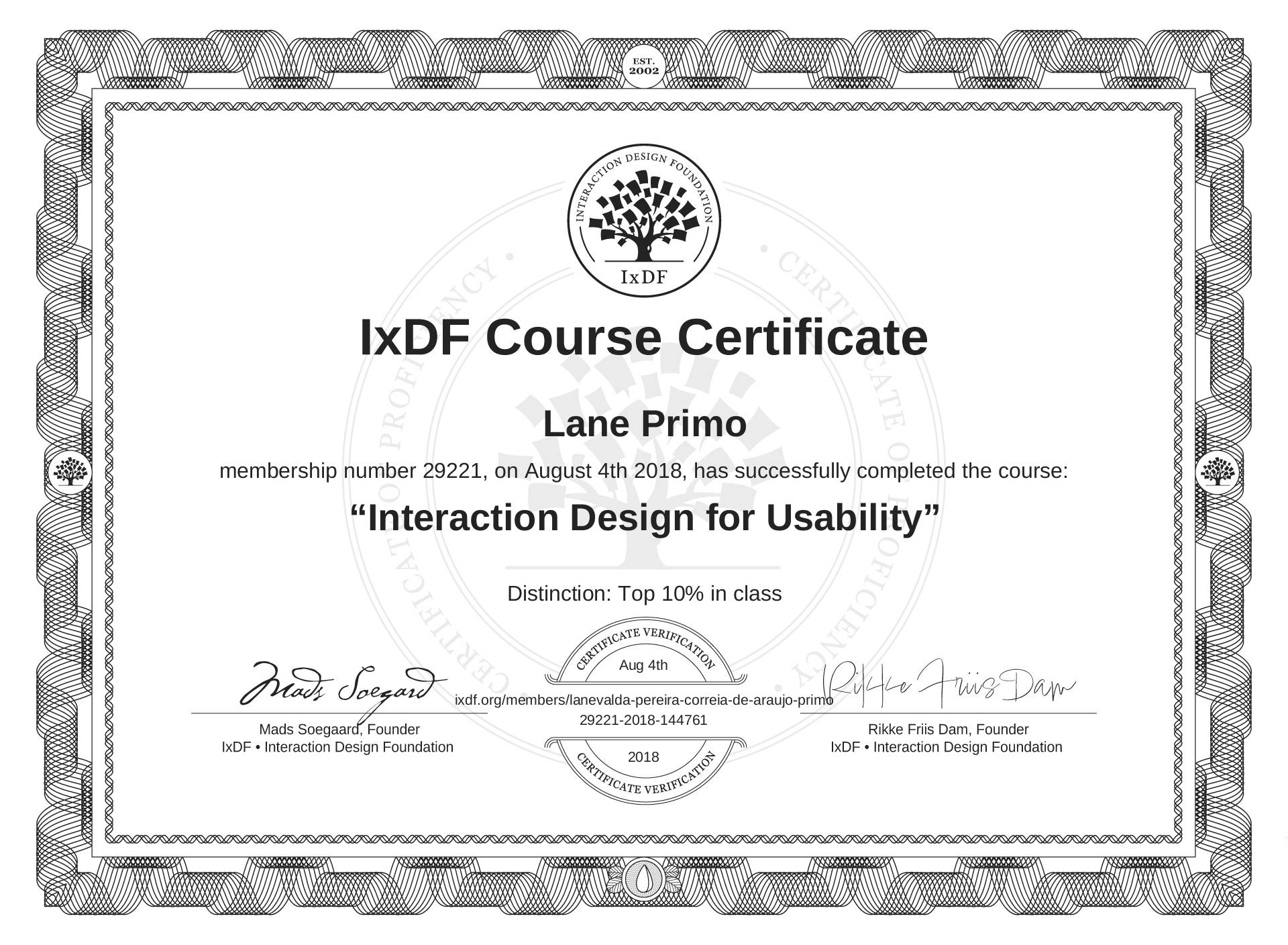 Lane Primo's IxDF Course Certificate: Interaction Design for Usability