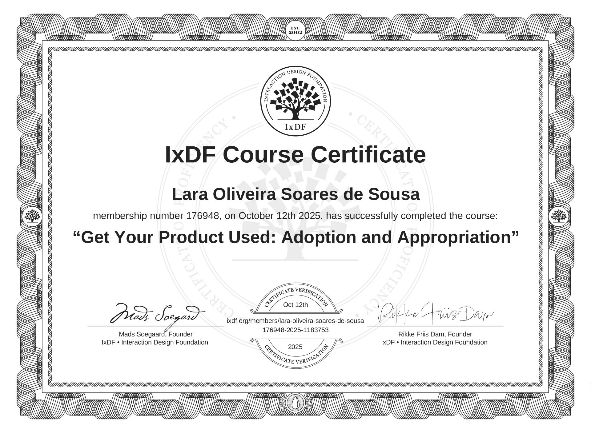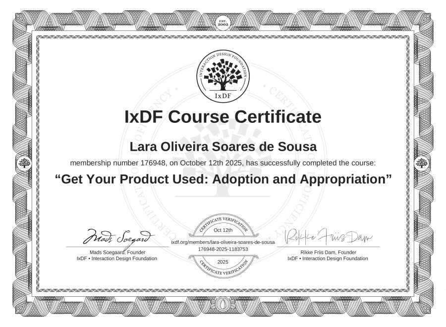 Lara Oliveira Soares de Sousa's IxDF Course Certificate: Get Your Product Used: Adoption and Appropriation
