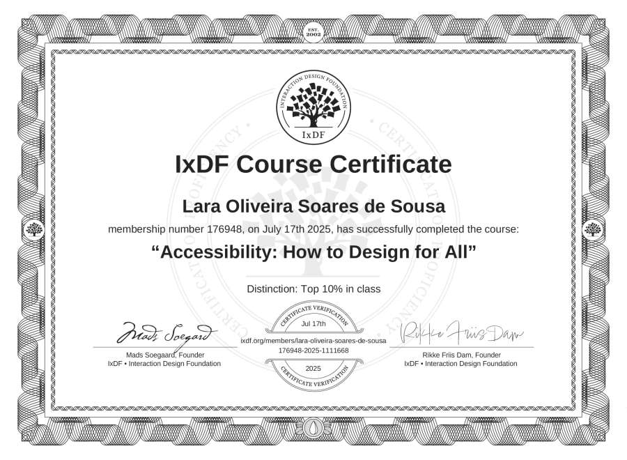 Lara Oliveira Soares de Sousa's IxDF Course Certificate: Accessibility: How to Design for All