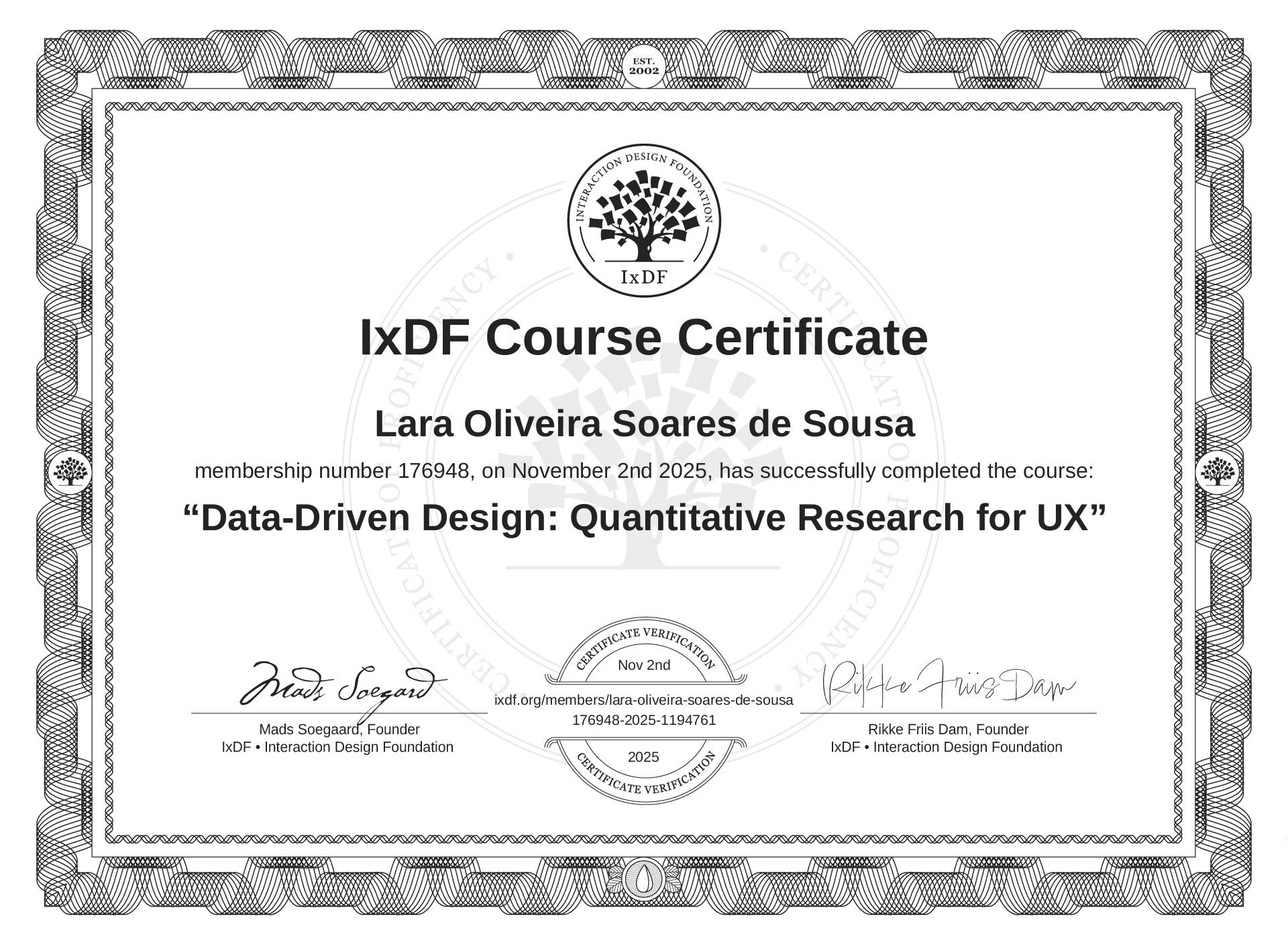 Lara Oliveira Soares de Sousa's IxDF Course Certificate: Data-Driven Design: Quantitative Research for UX