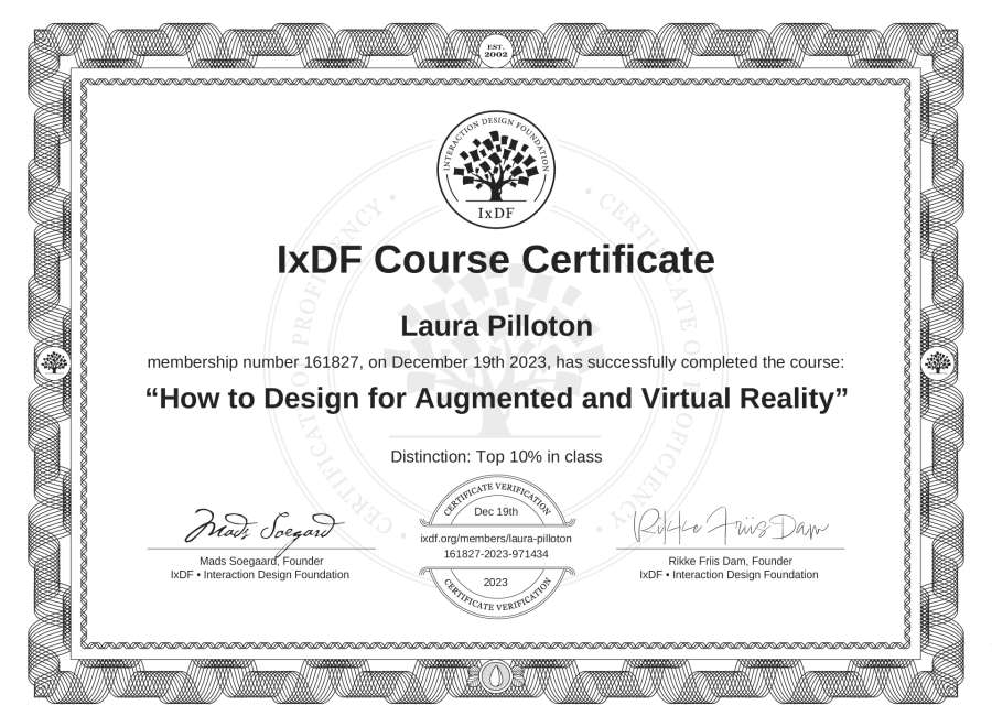 Laura Pilloton's IxDF Course Certificate: How to Design for Augmented and Virtual Reality