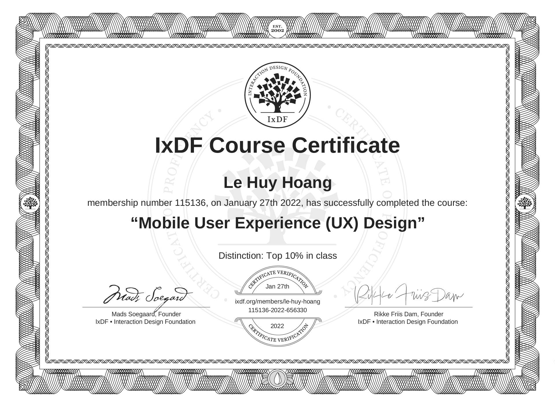 Le Huy Hoang's IxDF Course Certificate: Mobile User Experience (UX) Design