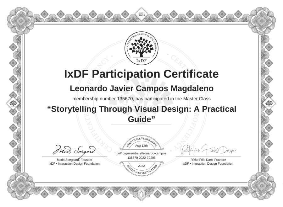 Leonardo Javier Campos Magdaleno's IxDF Masterclass Certificate: Storytelling Through Visual Design: A Practical Guide