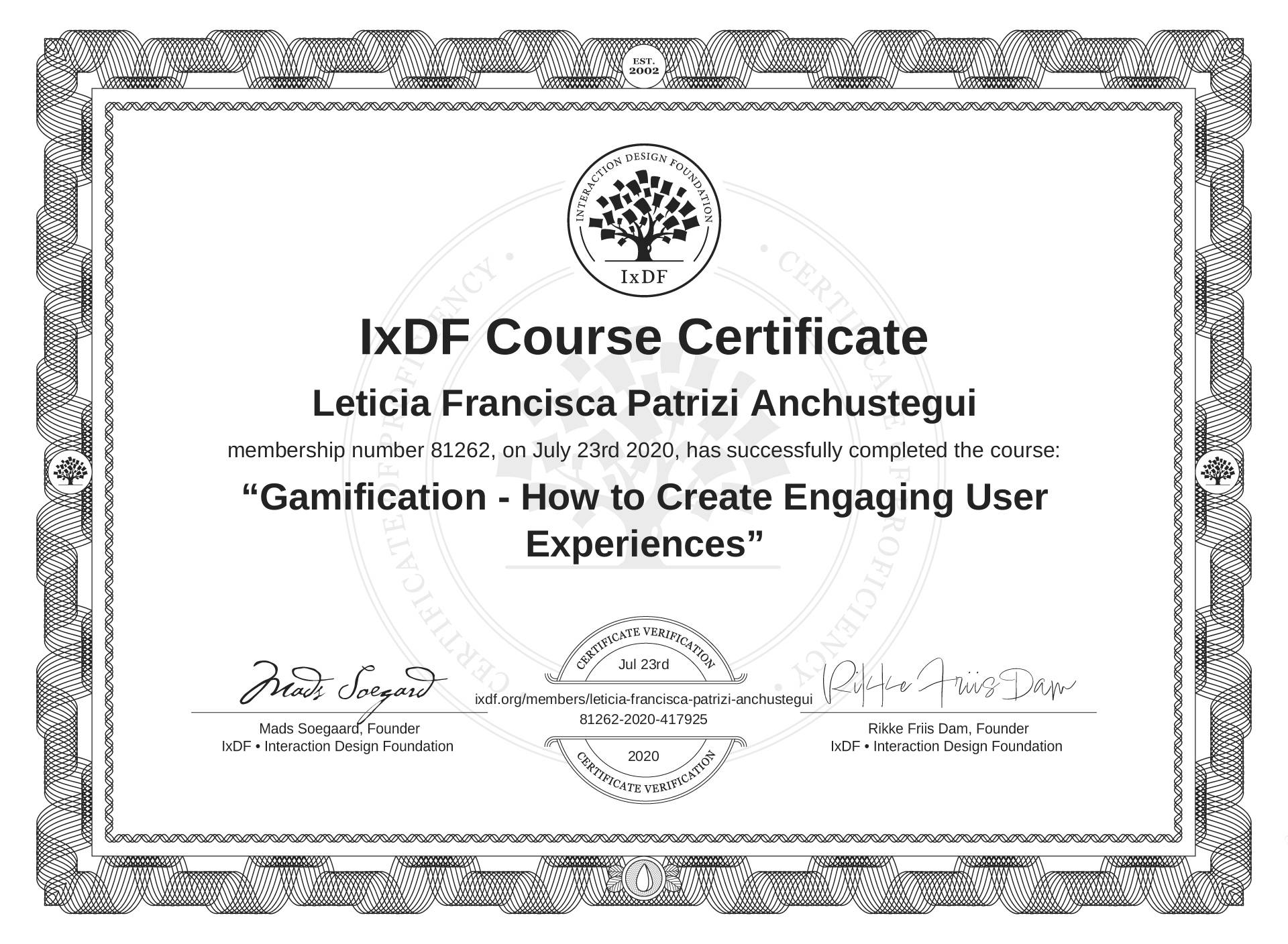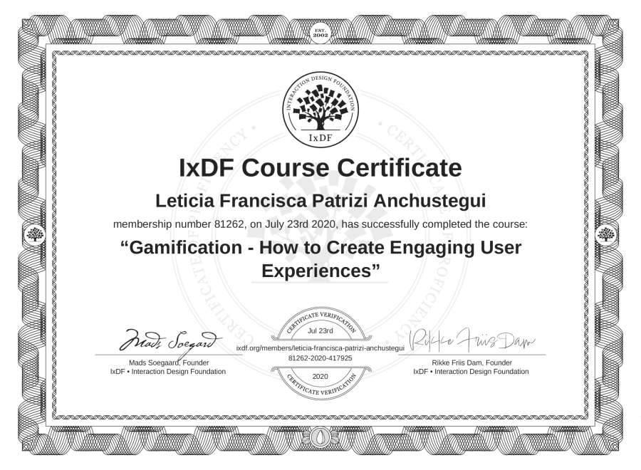 Leticia Francisca Patrizi Anchustegui's IxDF Course Certificate: Gamification - How to Create Engaging User Experiences