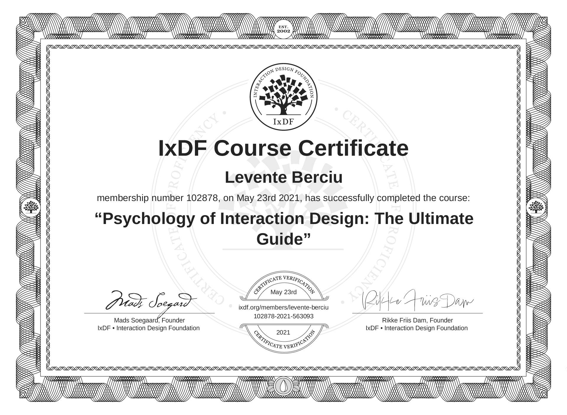 Levente Berciu's IxDF Course Certificate: Psychology of Interaction Design: The Ultimate Guide