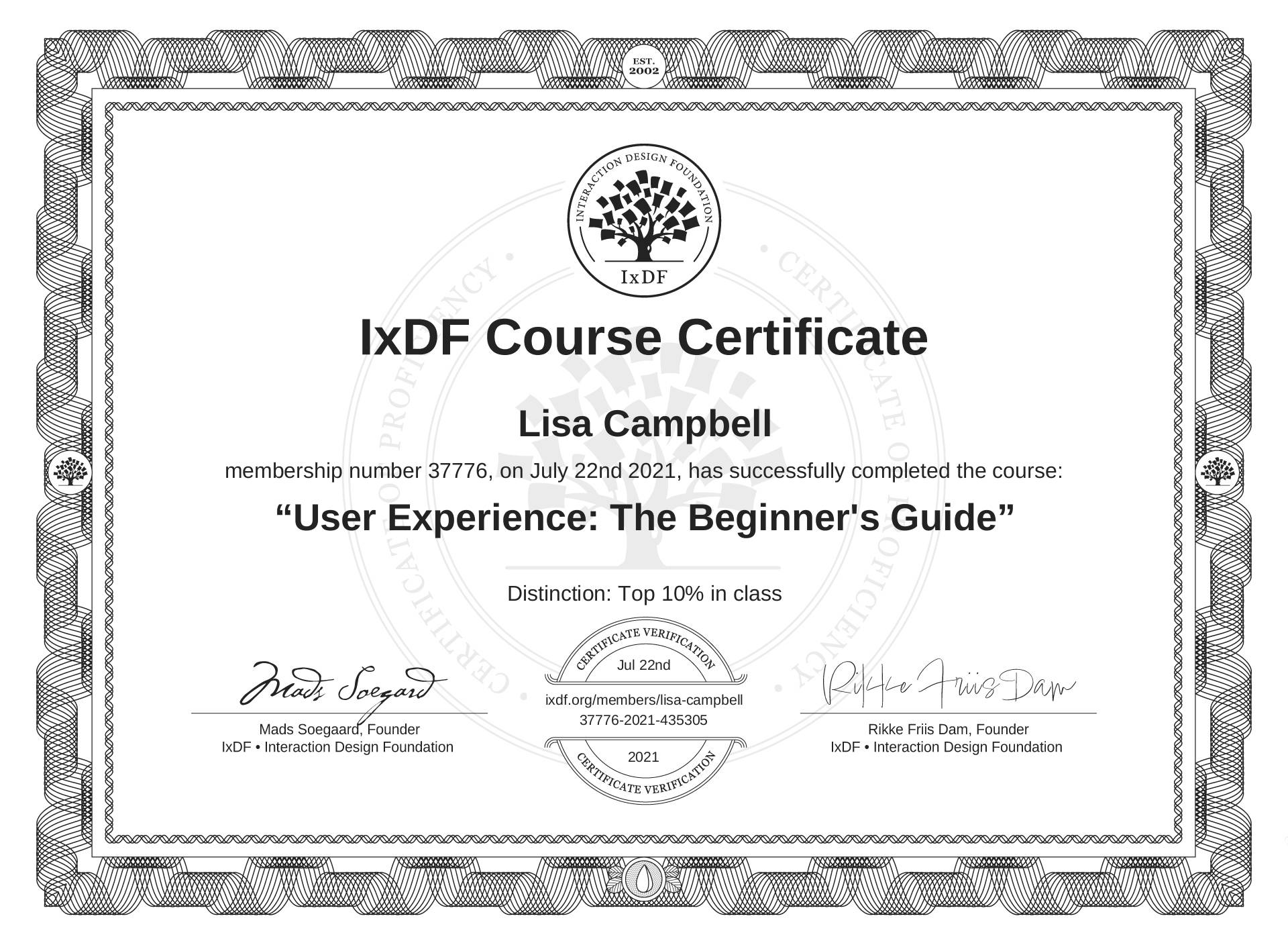 Lisa Campbell's IxDF Course Certificate: User Experience: The Beginner's Guide