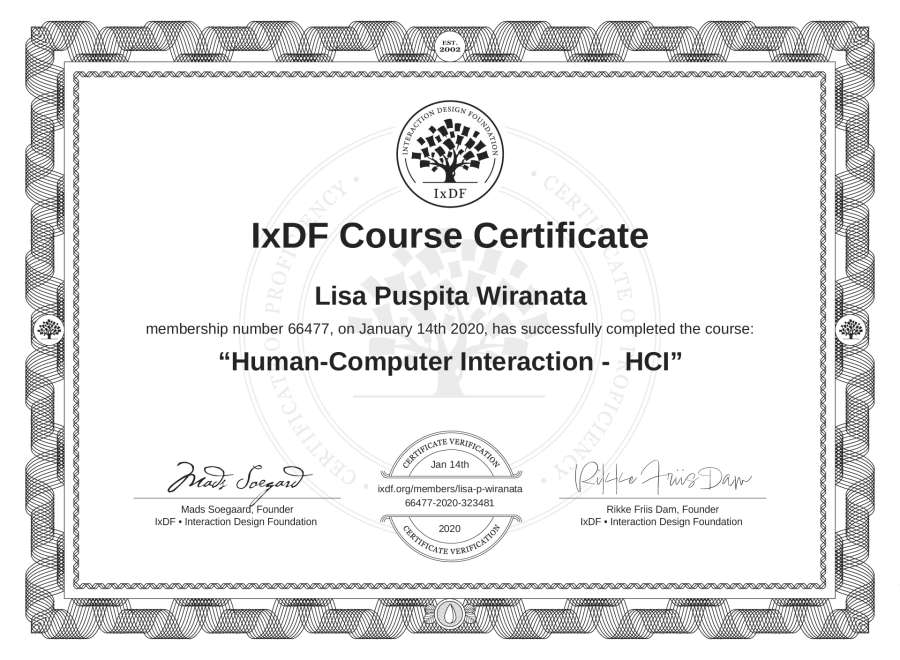 Lisa Puspita Wiranata's IxDF Course Certificate: Human-Computer Interaction - HCI
