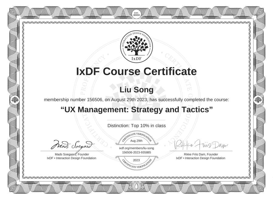 Liu Song's IxDF Course Certificate: UX Management: Strategy and Tactics