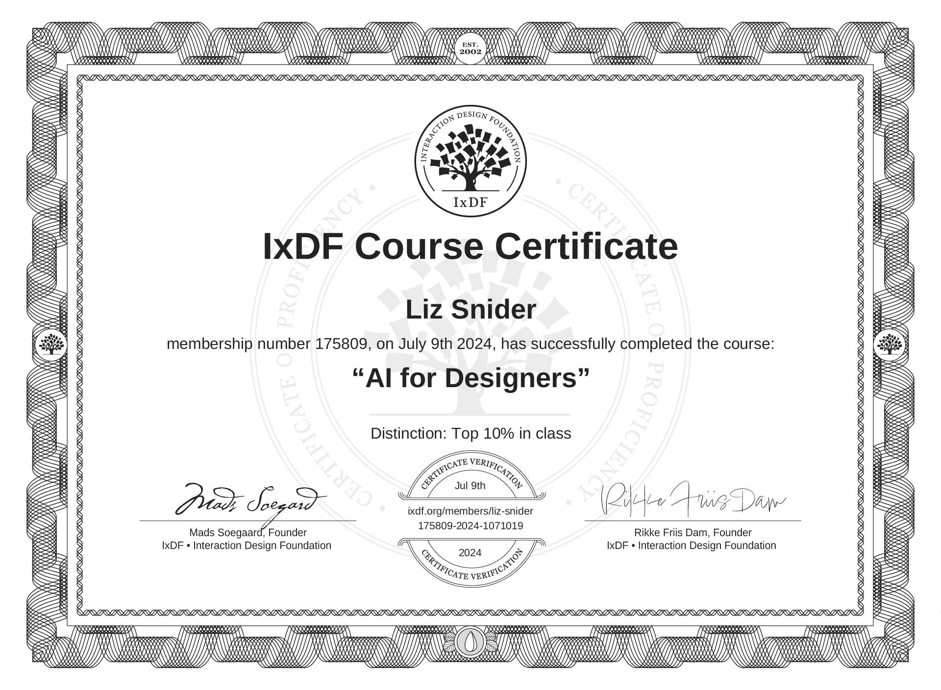 Liz Snider's IxDF Course Certificate: AI for Designers