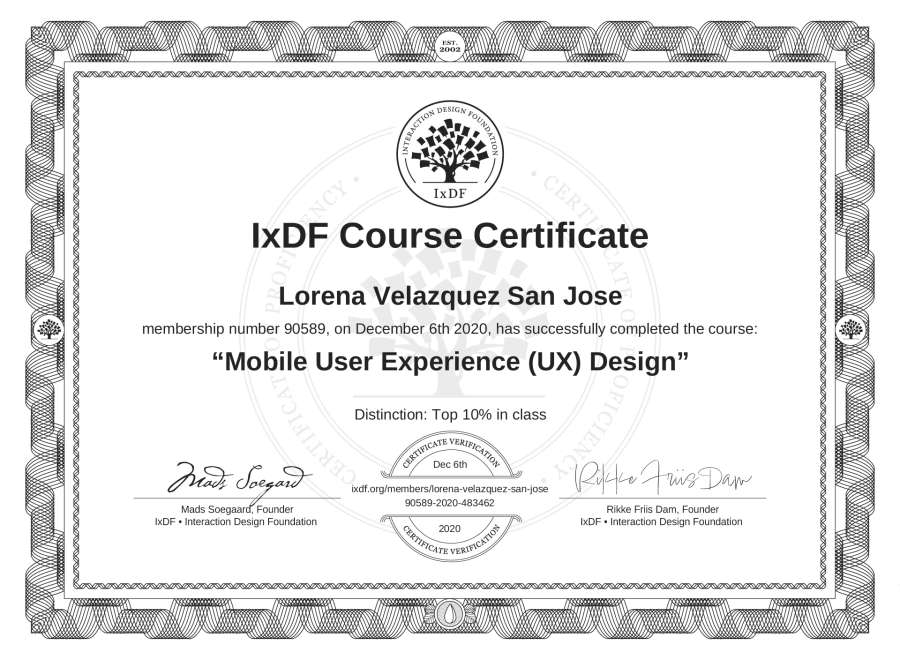 Lorena Velázquez San José's IxDF Course Certificate: Mobile User Experience (UX) Design