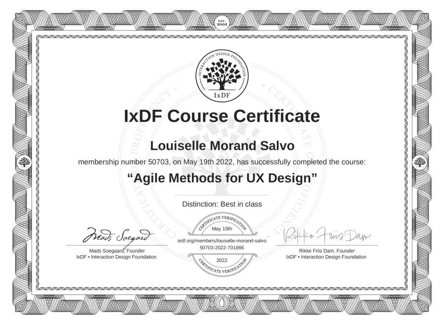 Louiselle Morand Salvo's IxDF Course Certificate: Agile Methods for UX Design