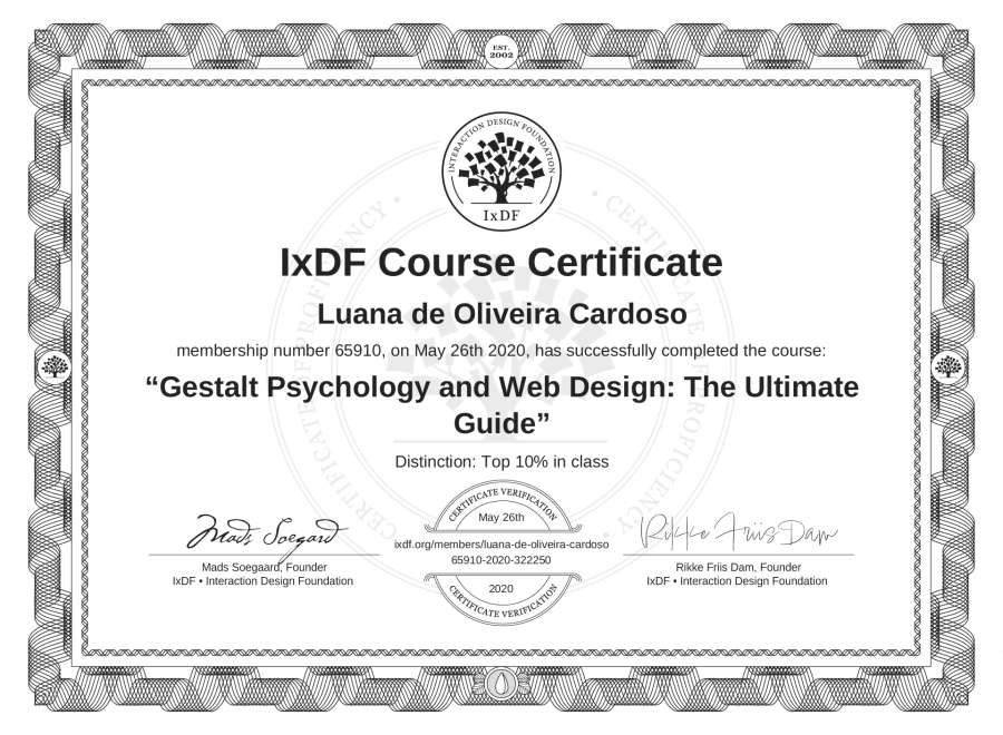 Luana de Oliveira Cardoso's IxDF Course Certificate: Gestalt Psychology and Web Design: The Ultimate Guide