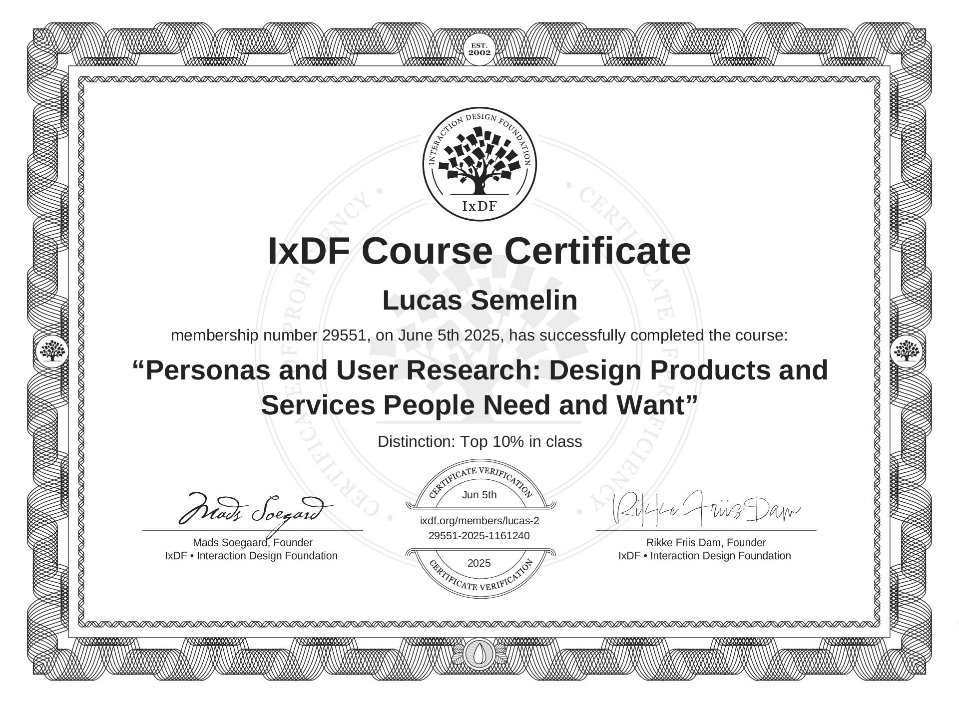Lucas Semelin's IxDF Course Certificate: Personas and User Research: Design Products and Services People Need and Want
