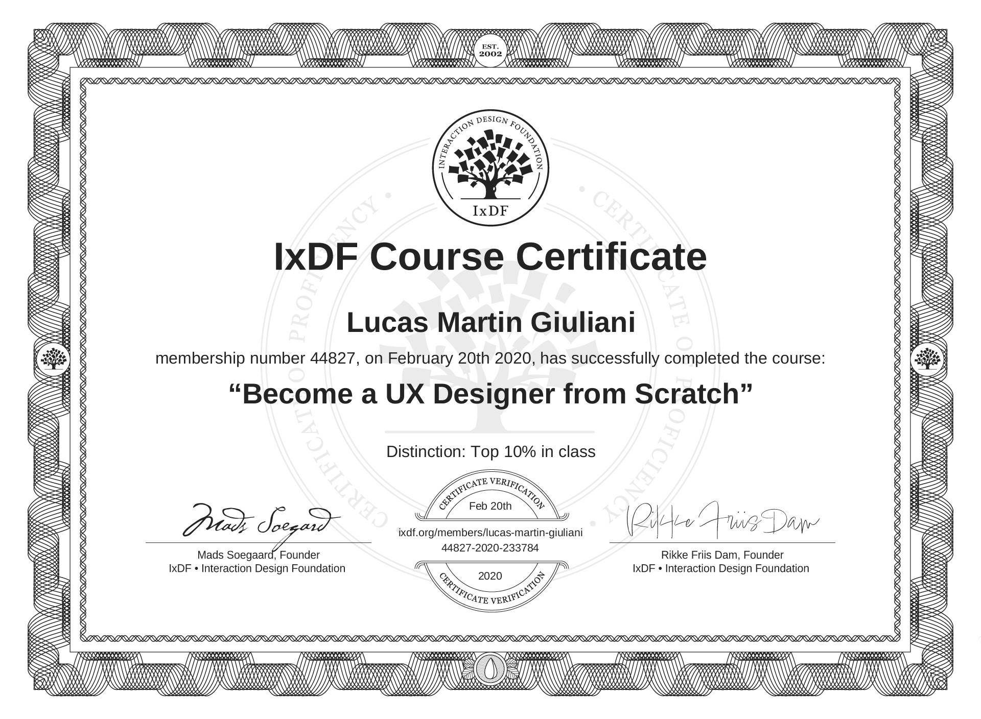Lucas Martin Giuliani's IxDF Course Certificate: Become a UX Designer from Scratch