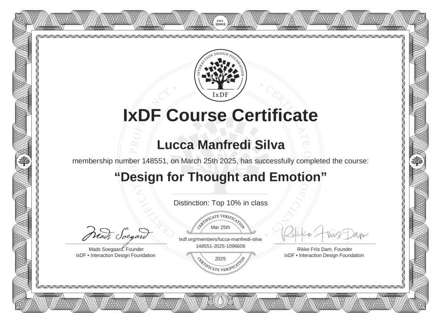Lucca Manfredi Silva's IxDF Course Certificate: Design for Thought and Emotion