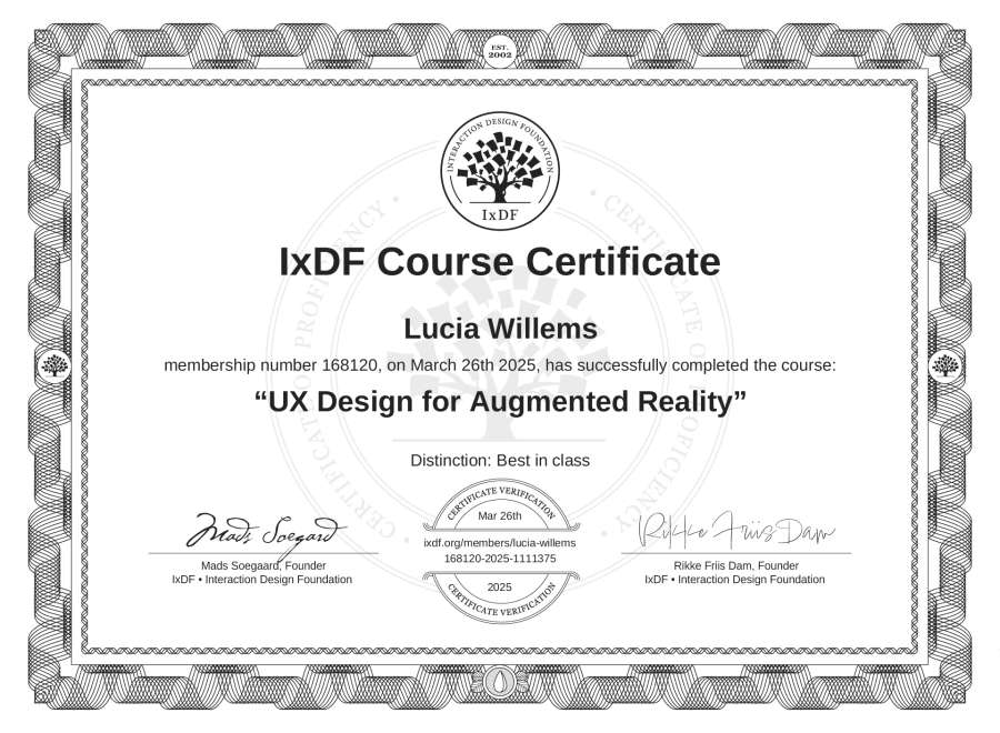 Lucia Willems's IxDF Course Certificate: UX Design for Augmented Reality