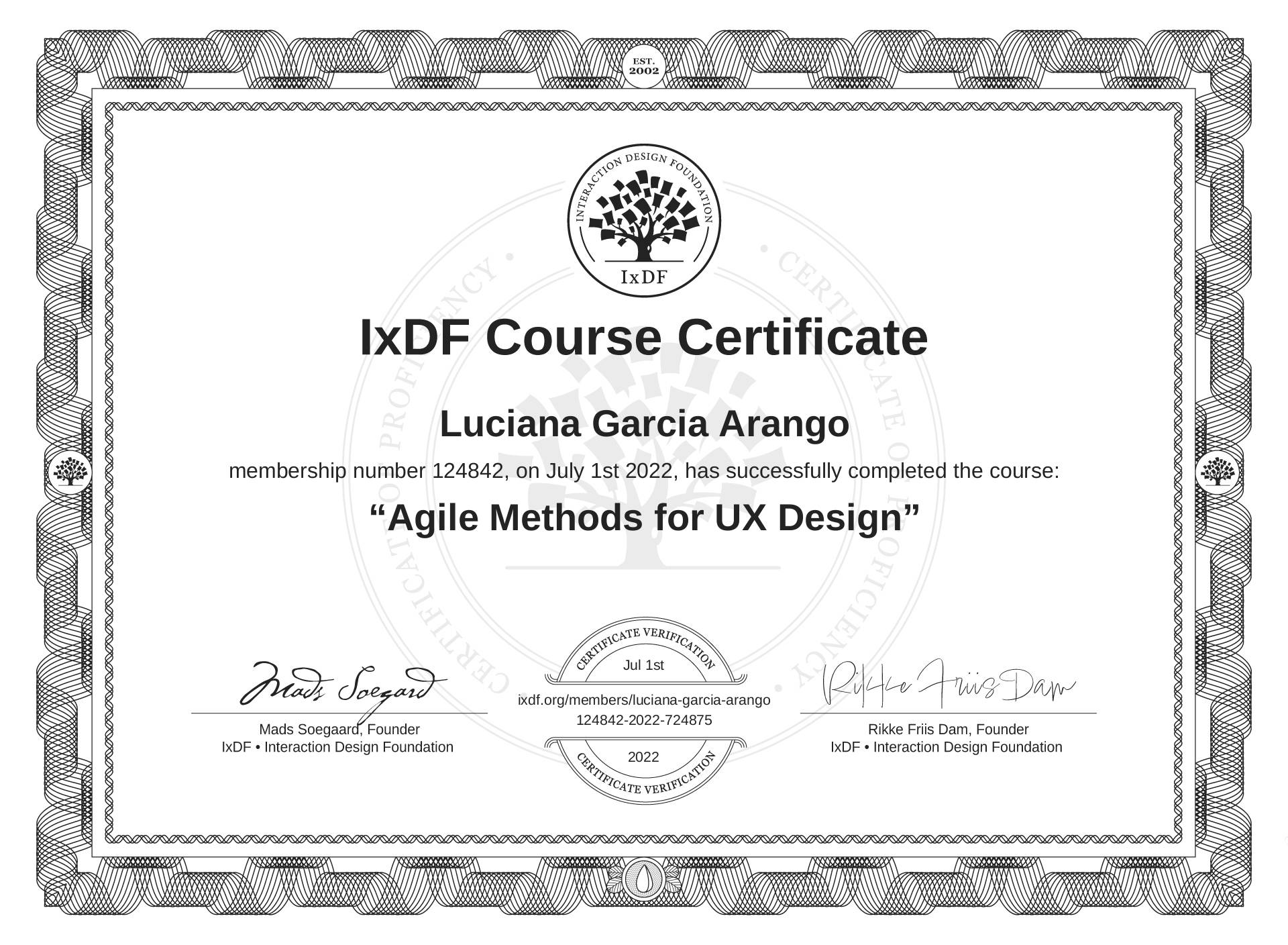Luciana García Arango's IxDF Course Certificate: Agile Methods for UX Design