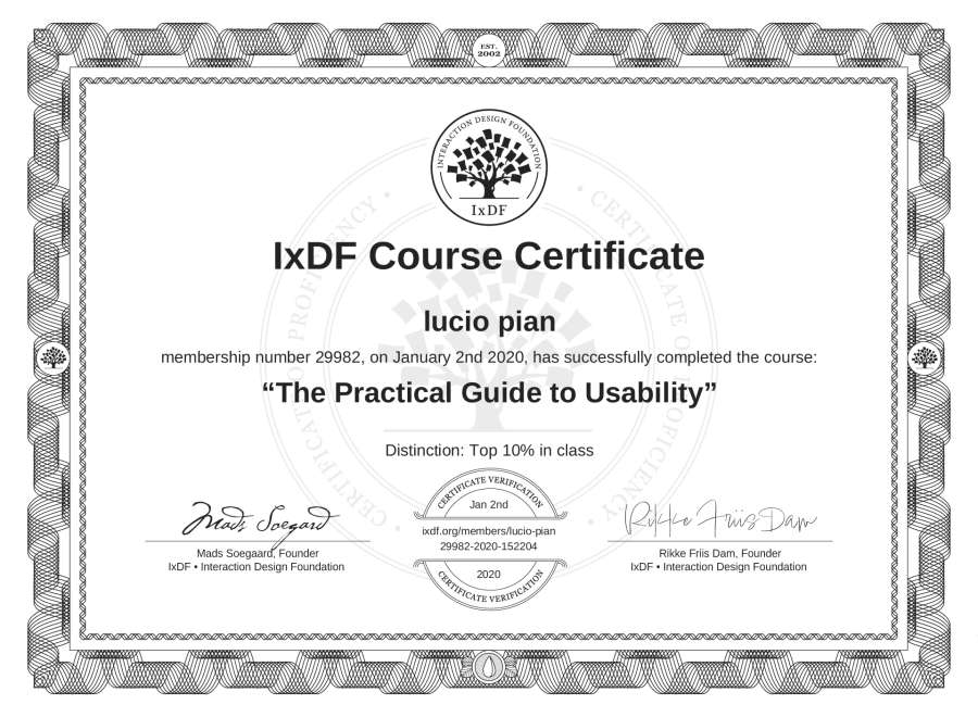 lucio pian's IxDF Course Certificate: The Practical Guide to Usability