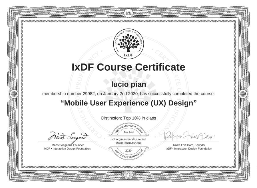 lucio pian's IxDF Course Certificate: Mobile User Experience (UX) Design