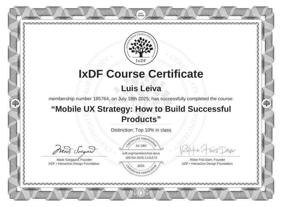 Luis Leiva's IxDF Course Certificate: Mobile UX Strategy: How to Build Successful Products