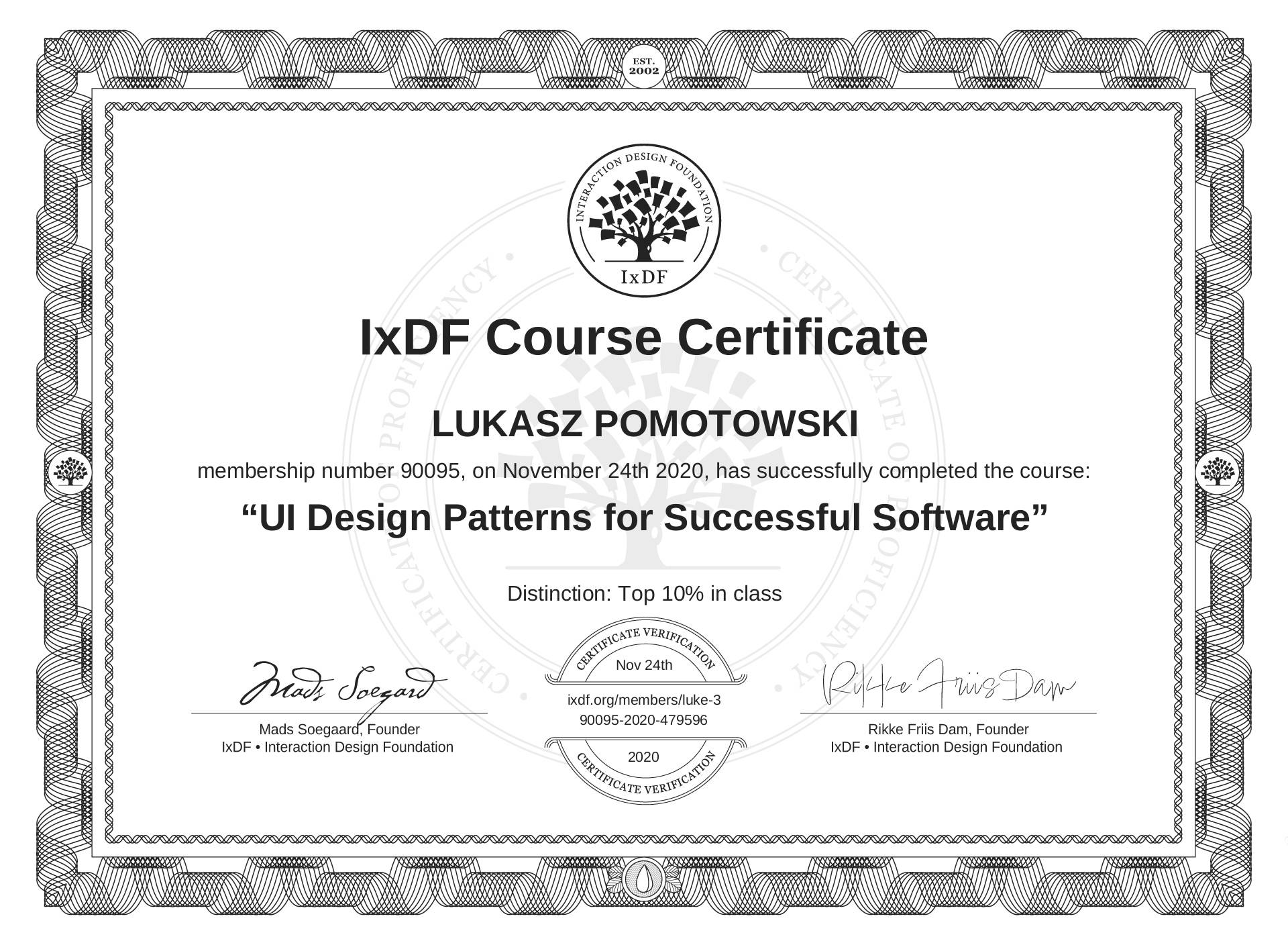 ŁUKASZ POMOTOWSKI's IxDF Course Certificate: UI Design Patterns for Successful Software