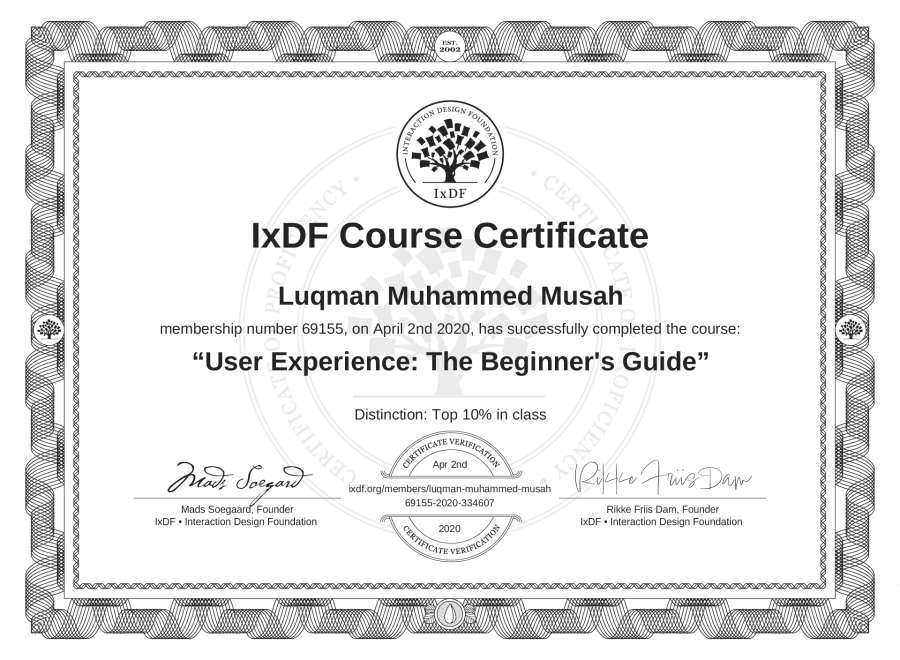 Luqman Muhammed Musah's IxDF Course Certificate: User Experience: The Beginner's Guide