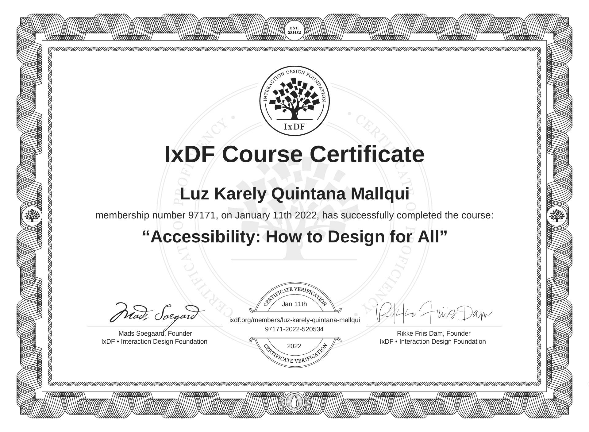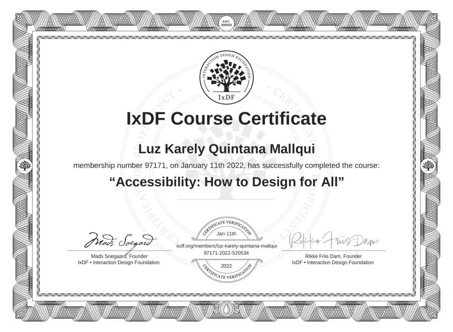 Luz Karely Quintana Mallqui's IxDF Course Certificate: Accessibility: How to Design for All