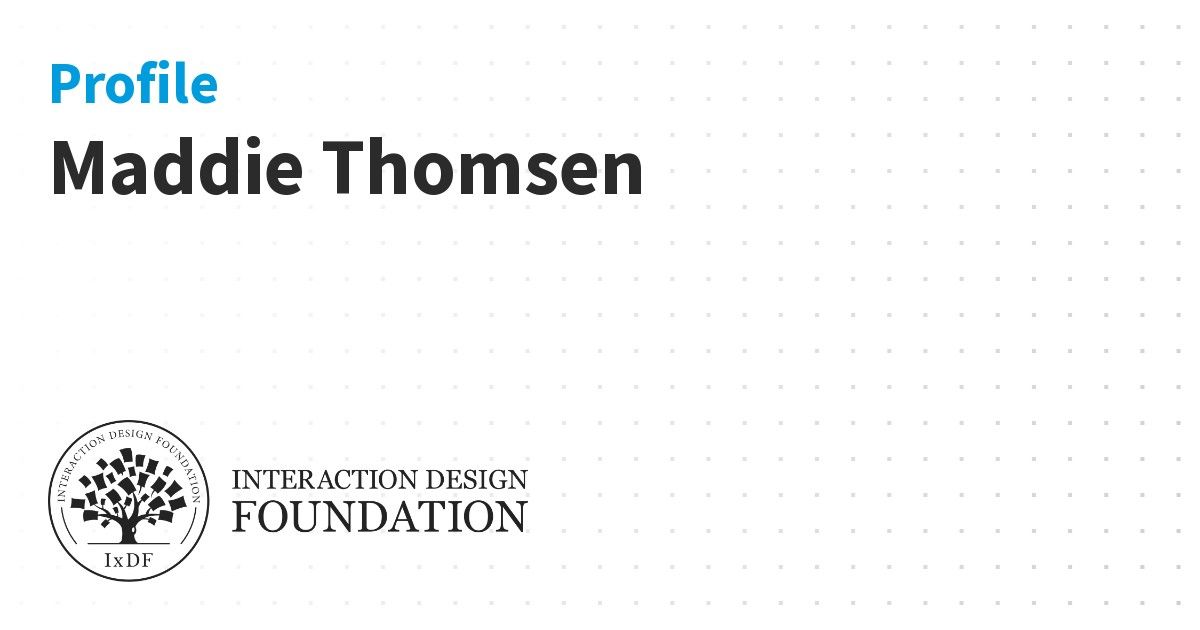 IxDF Course Certificates are awarded to Maddie Thomsen in formal recognition of their coursework surpassing the rigorous benchmarks of exceptional performance established by the IxDF Educational Codex.