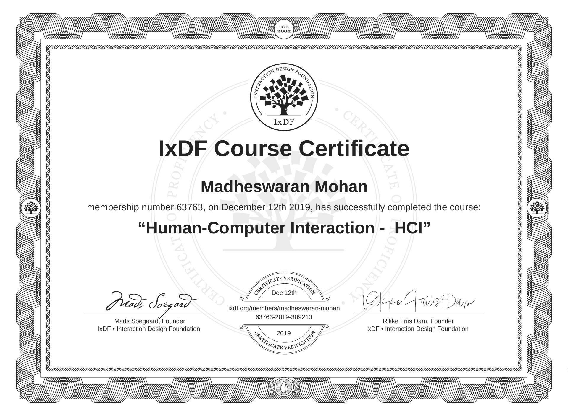 Madheswaran Mohan's IxDF Course Certificate: Human-Computer Interaction - HCI