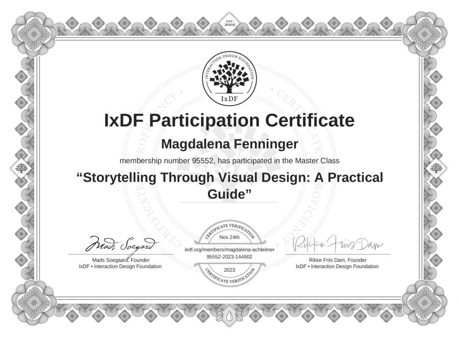 Magdalena Fenninger's IxDF Masterclass Certificate: Storytelling Through Visual Design: A Practical Guide