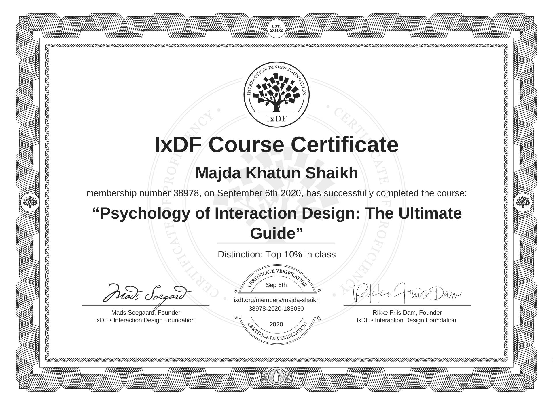Majda Khatun Shaikh's IxDF Course Certificate: Psychology of Interaction Design: The Ultimate Guide