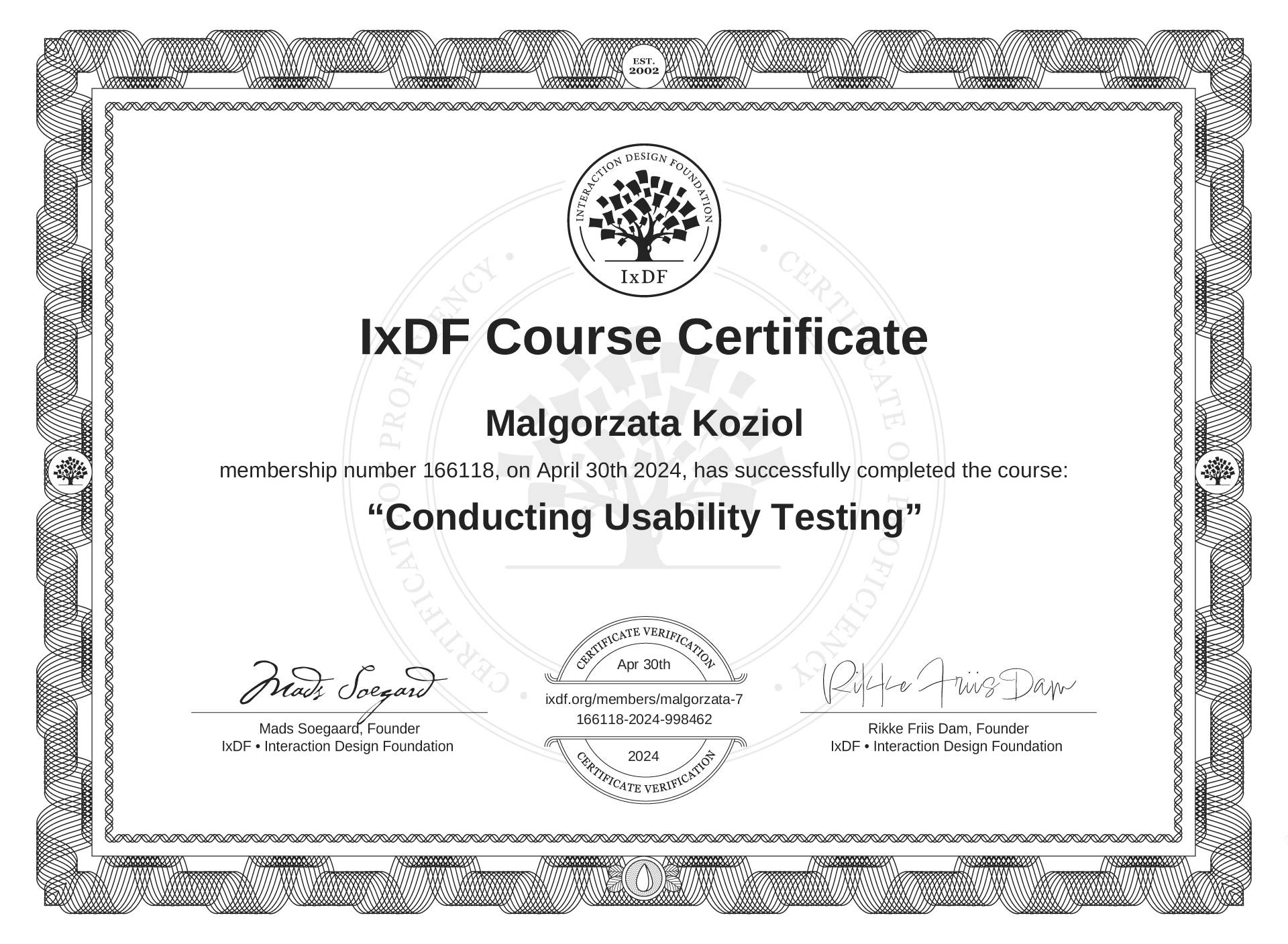 Małgorzata Kozioł's IxDF Course Certificate: Conducting Usability Testing