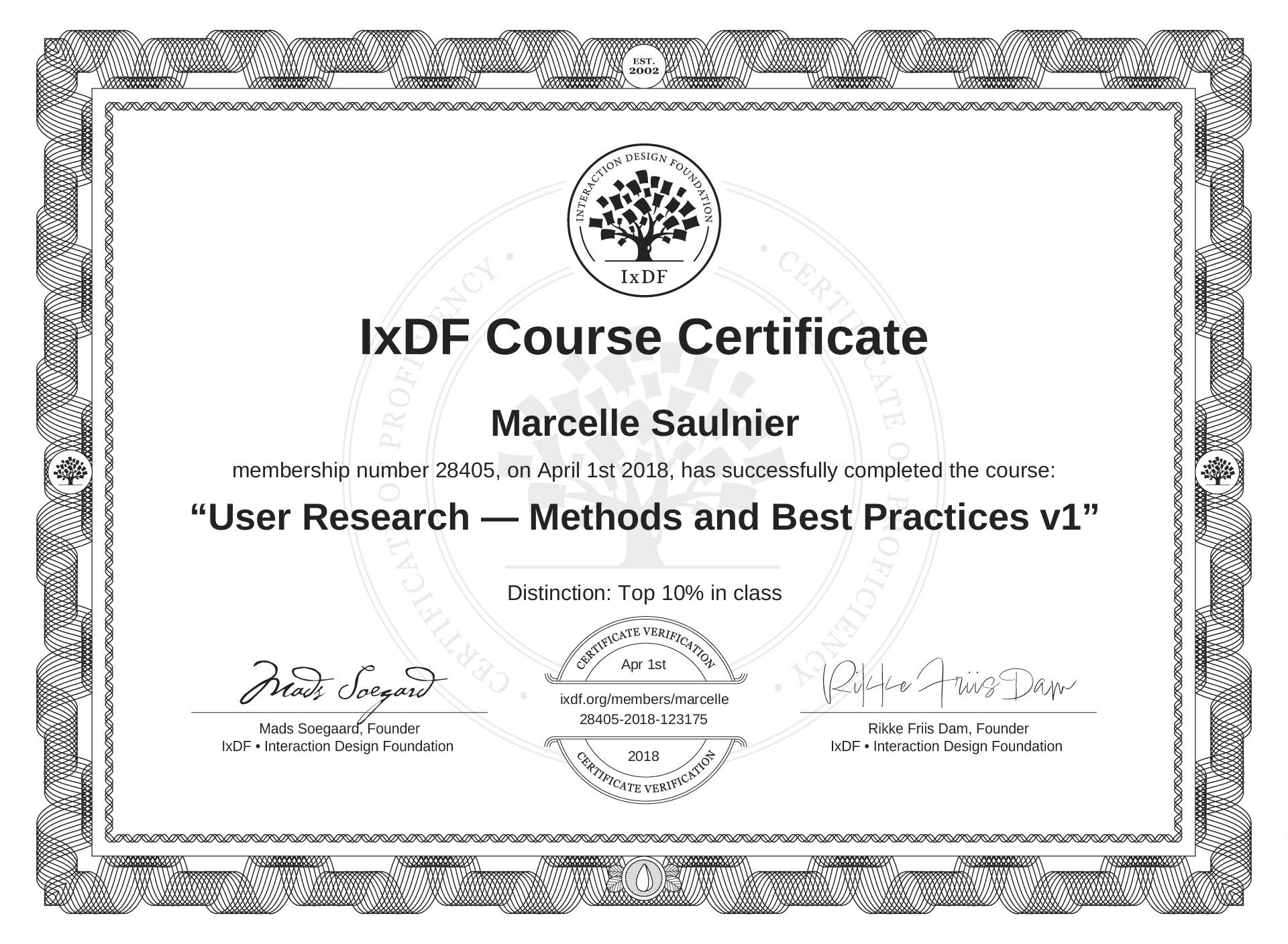 Marcelle Saulnier's IxDF Course Certificate: User Research — Methods and Best Practices v1