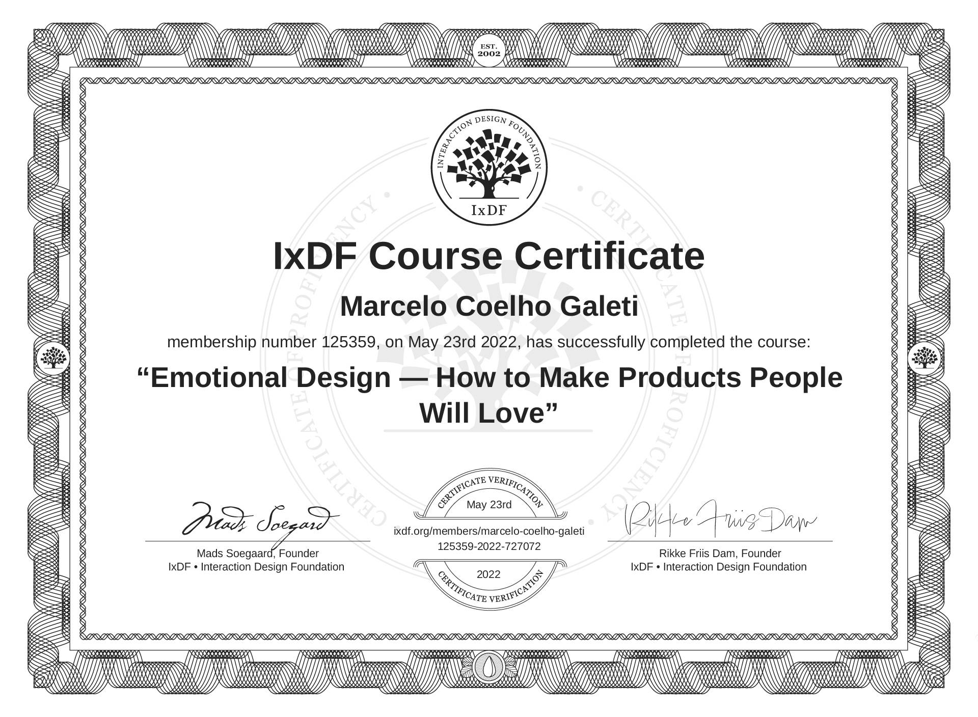 Marcelo Coelho Galeti's IxDF Course Certificate: Emotional Design — How to Make Products People Will Love