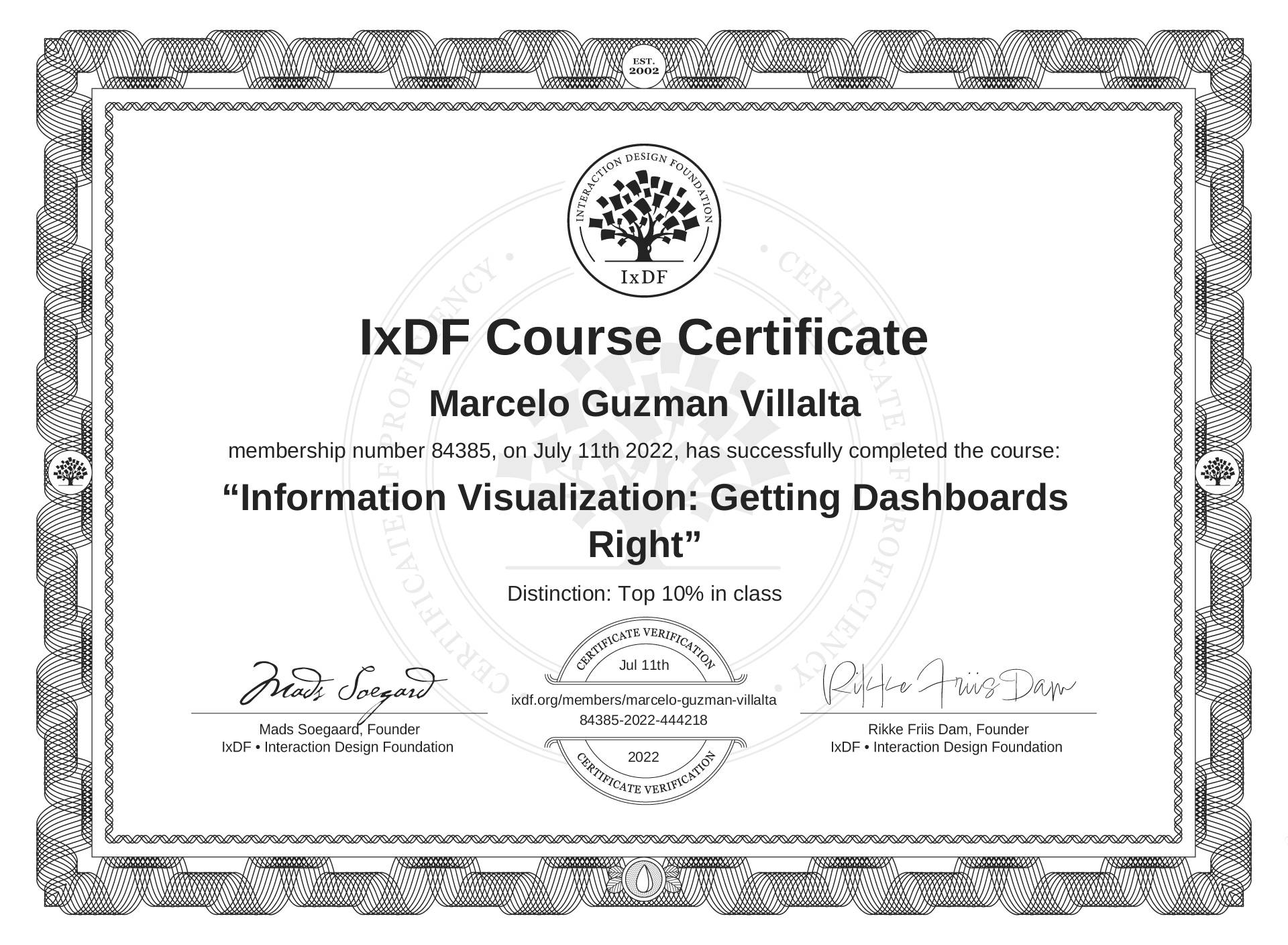 Marcelo Guzmán Villalta's IxDF Course Certificate: Information Visualization: Getting Dashboards Right