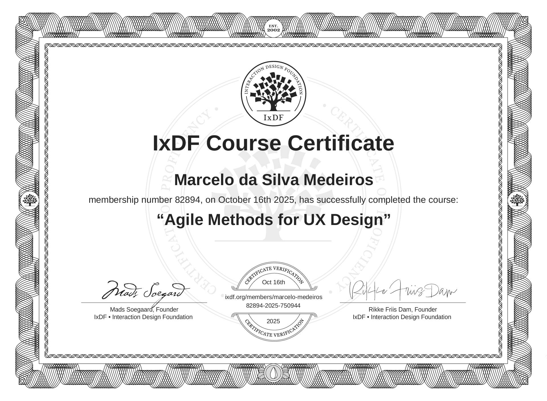 Marcelo da Silva Medeiros's IxDF Course Certificate: Agile Methods for UX Design