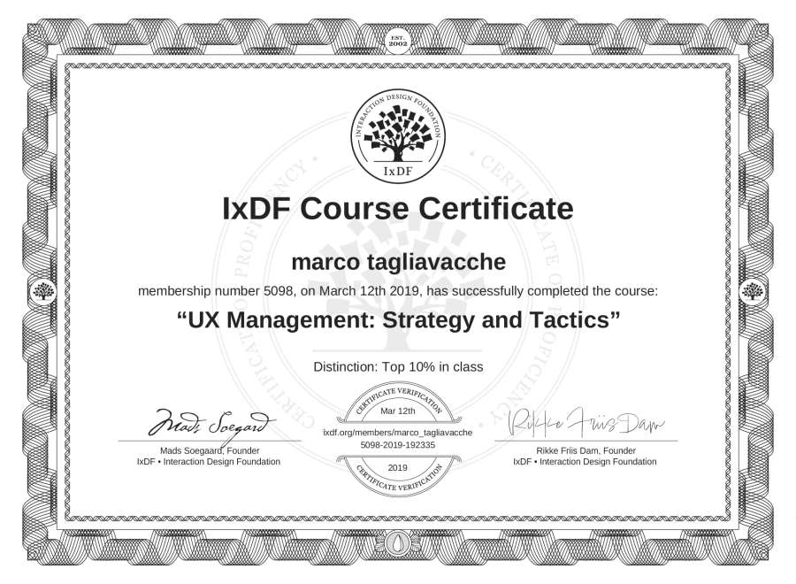 marco tagliavacche's IxDF Course Certificate: UX Management: Strategy and Tactics