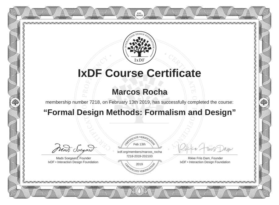 Marcos Rocha's IxDF Course Certificate: Formal Design Methods: Formalism and Design
