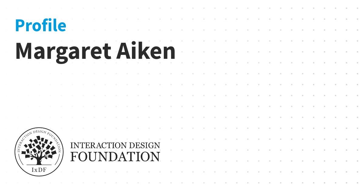 IxDF Course Certificates are awarded to Margaret Aiken in formal recognition of their coursework surpassing the rigorous benchmarks of exceptional performance established by the IxDF Educational Codex.