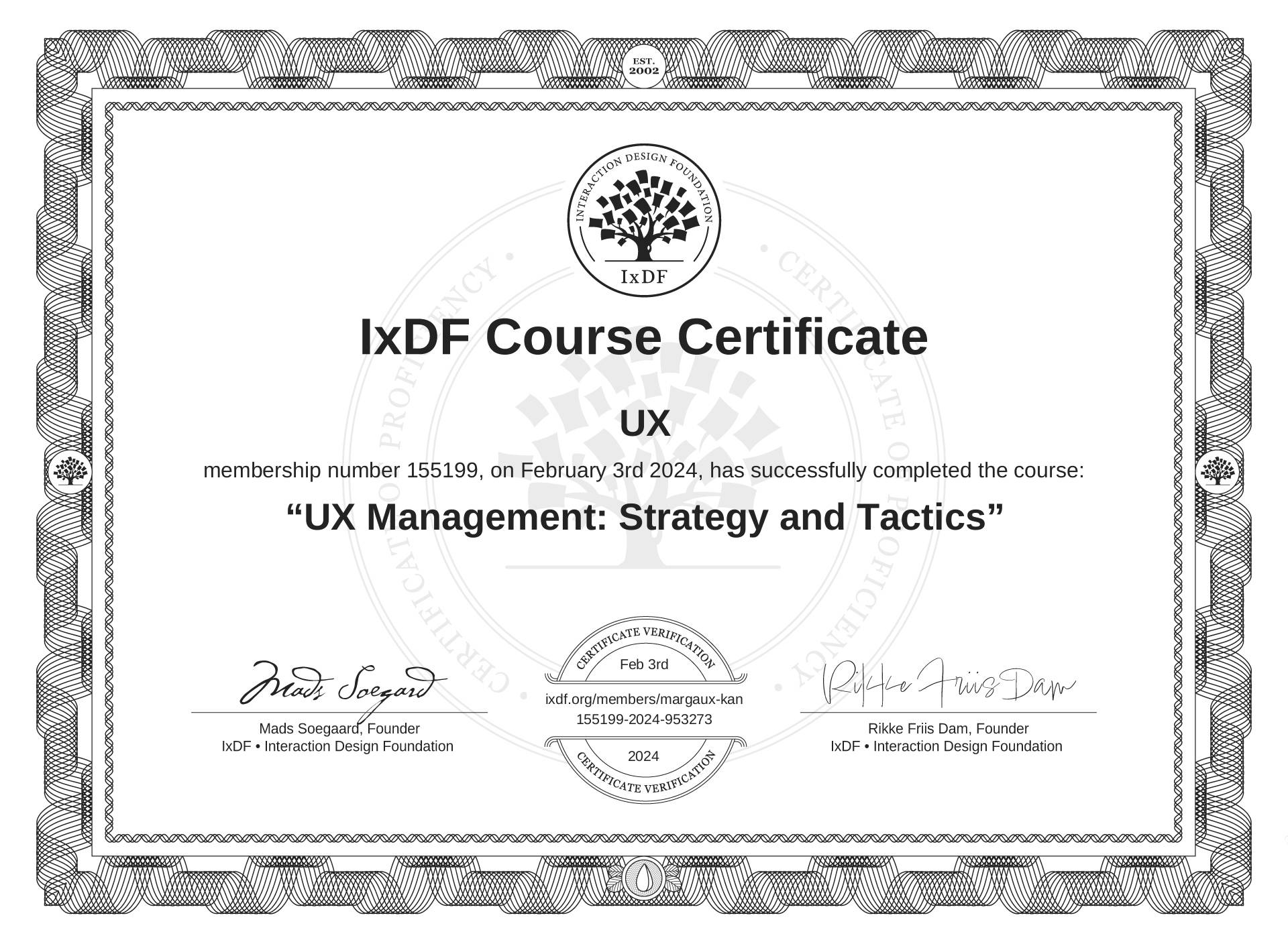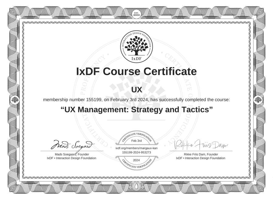 UX's IxDF Course Certificate: UX Management: Strategy and Tactics