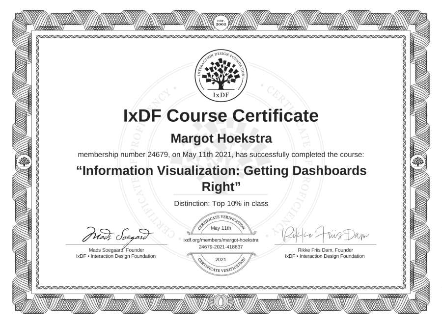 Margot Hoekstra's IxDF Course Certificate: Information Visualization: Getting Dashboards Right