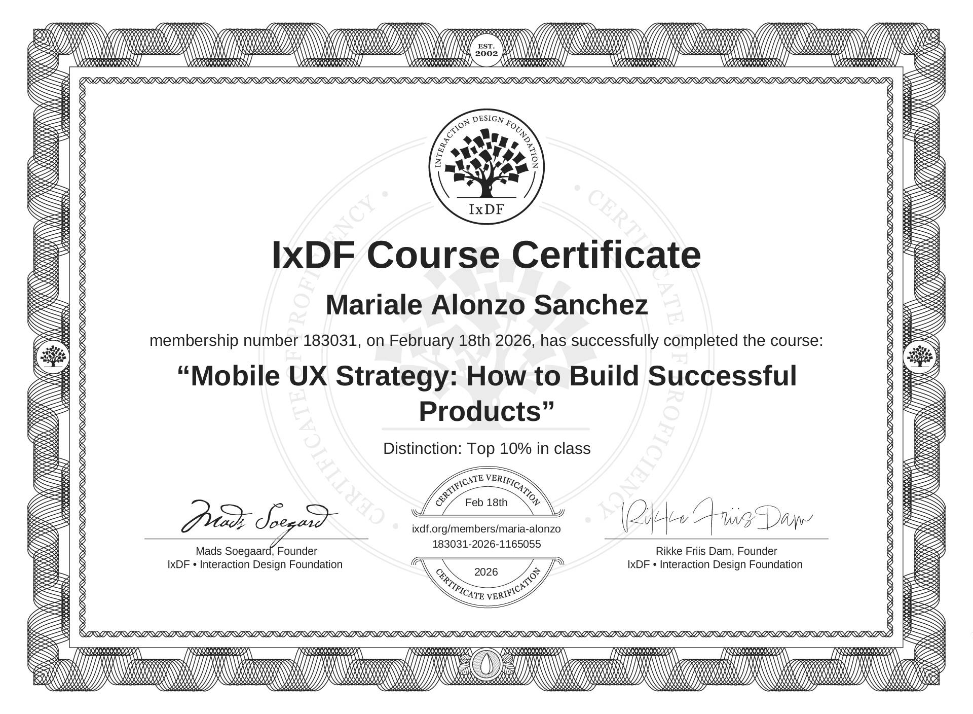 Mariale Alonzo Sánchez's IxDF Course Certificate: Mobile UX Strategy: How to Build Successful Products