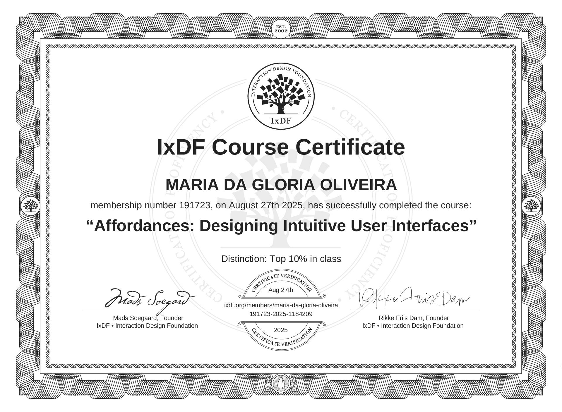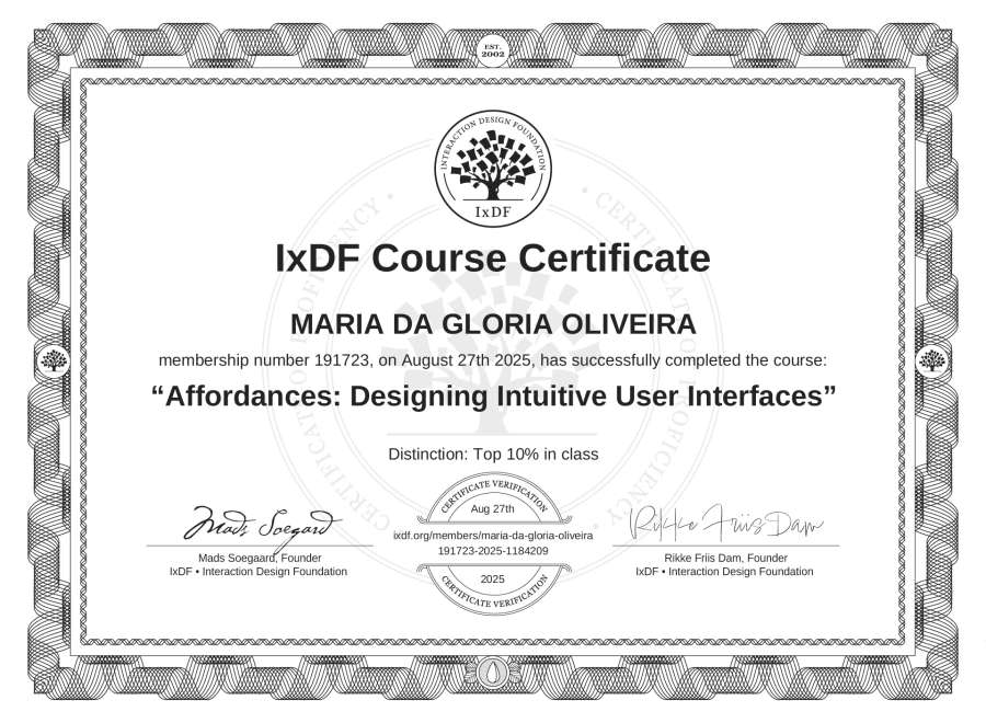 MARIA DA GLORIA OLIVEIRA's IxDF Course Certificate: Affordances: Designing Intuitive User Interfaces