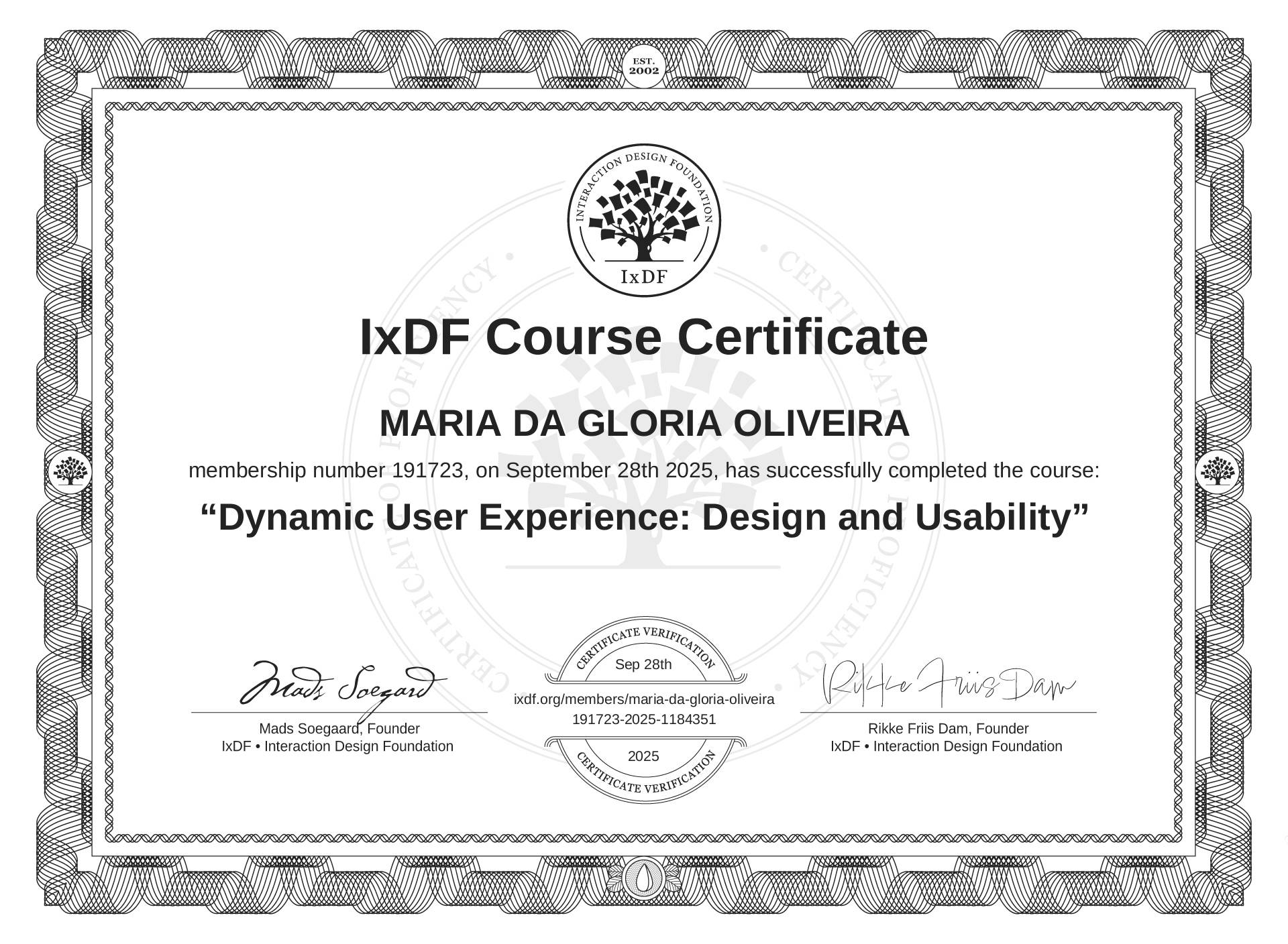 MARIA DA GLORIA OLIVEIRA's IxDF Course Certificate: Dynamic User Experience: Design and Usability