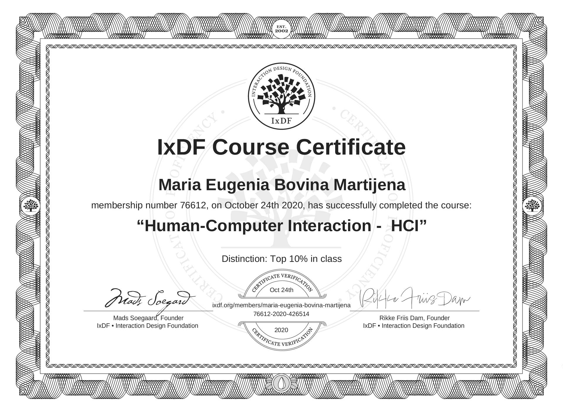 María Eugenia Bovina Martijena's IxDF Course Certificate: Human-Computer Interaction - HCI