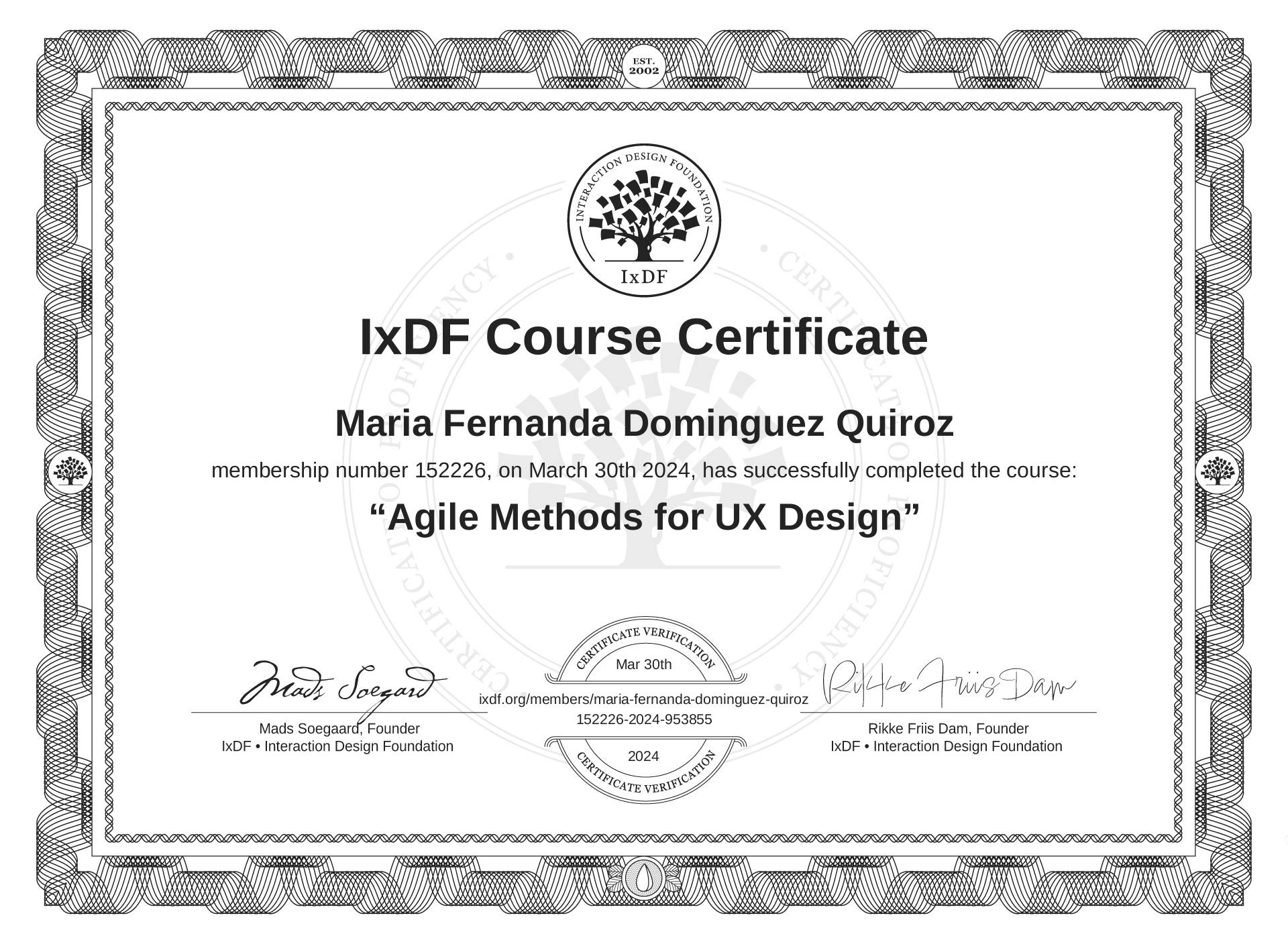María Fernanda Domínguez Quiroz's IxDF Course Certificate: Agile Methods for UX Design