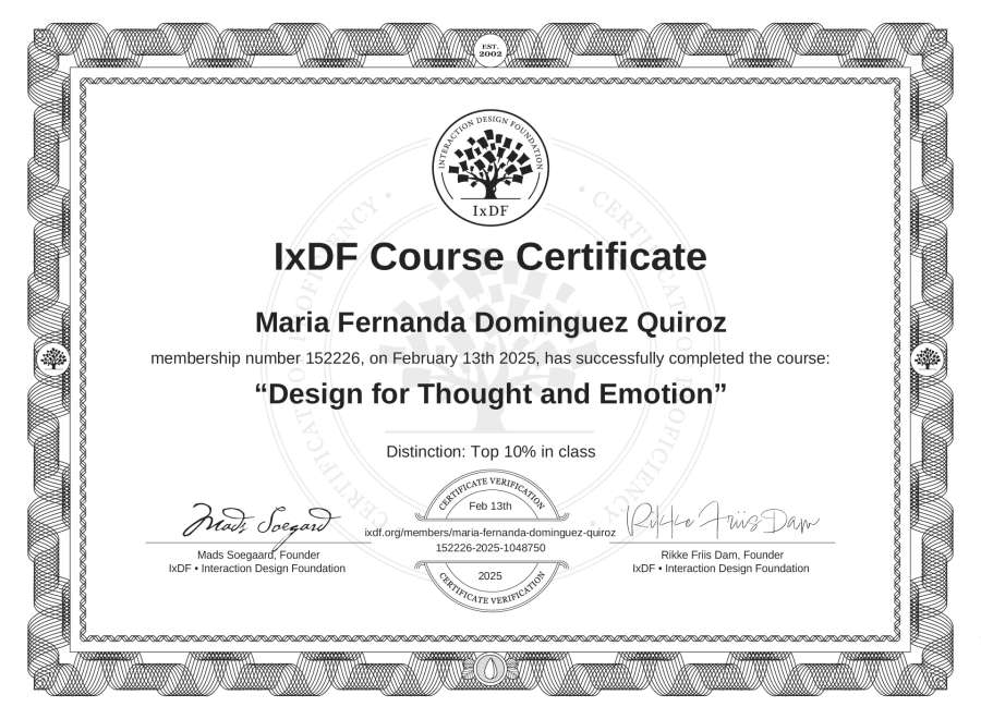 María Fernanda Domínguez Quiroz's IxDF Course Certificate: Design for Thought and Emotion