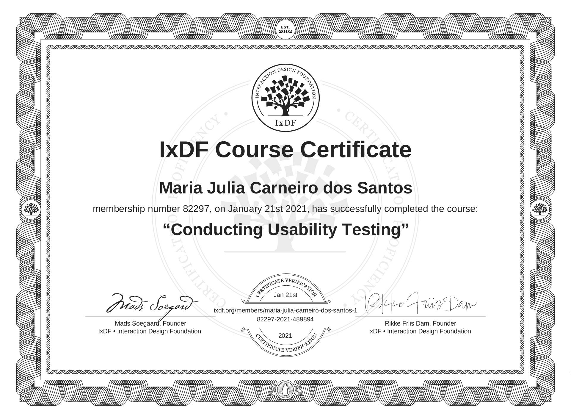 Maria Julia Carneiro dos Santos's IxDF Course Certificate: Conducting Usability Testing