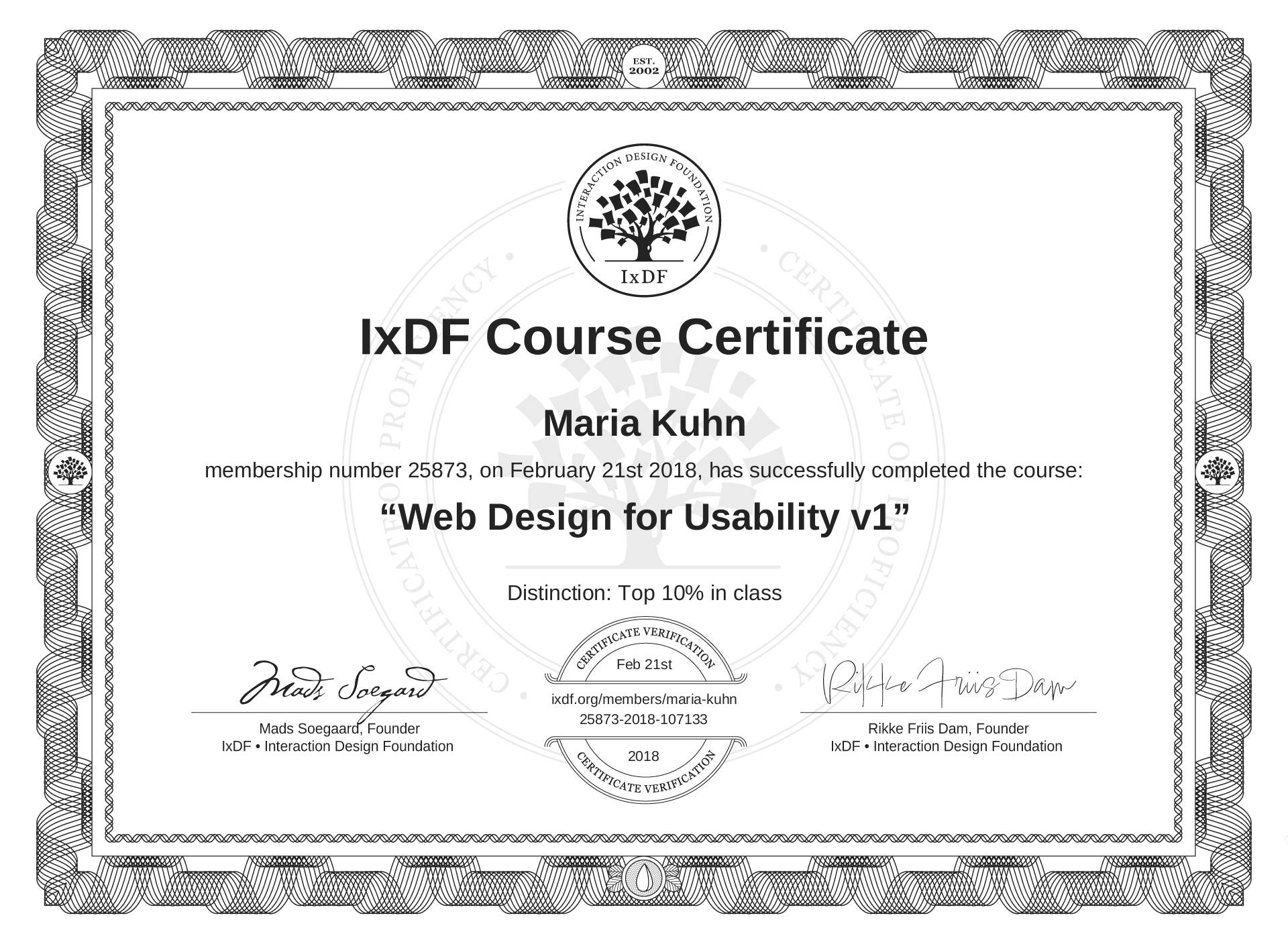 Maria Kuhn's IxDF Course Certificate: Web Design for Usability v1