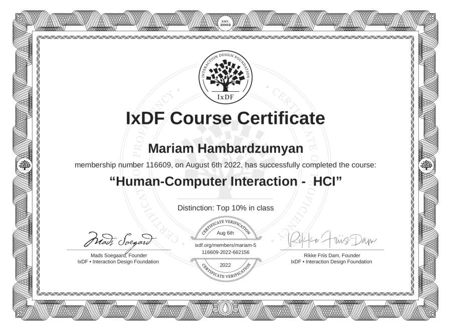 Mariam Hambardzumyan's IxDF Course Certificate: Human-Computer Interaction - HCI
